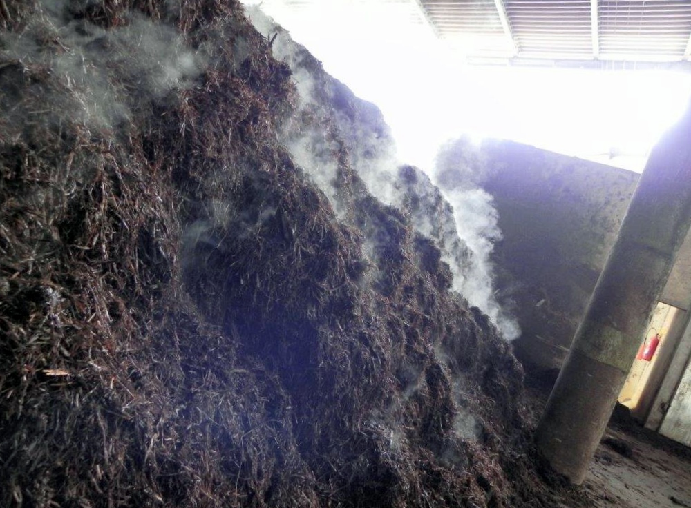 A disponibilidade de nutrientes, umidade, ar e na presença de bactérias elevam rapidamente a temperaturas a níveis acima dos 80ºC.